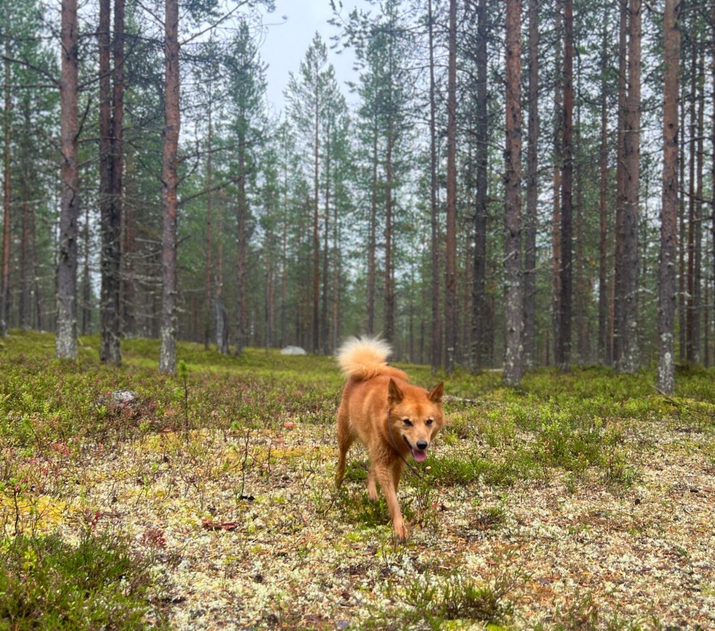 Savukoskella kävimme maastoissa etsimässä lintuja – ampuahan niitä ei siellä vielä siihen ajankohtaan saanut. Tiedustelimme Sumun kanssa Dollyn kokeen maaston muutamaa päivää aiemmin. Tilanteita tuli ja meni, oli myös lämmintä. Oli mukavaa kulkea maastoissa, uusia nekin meille suurelta osin.