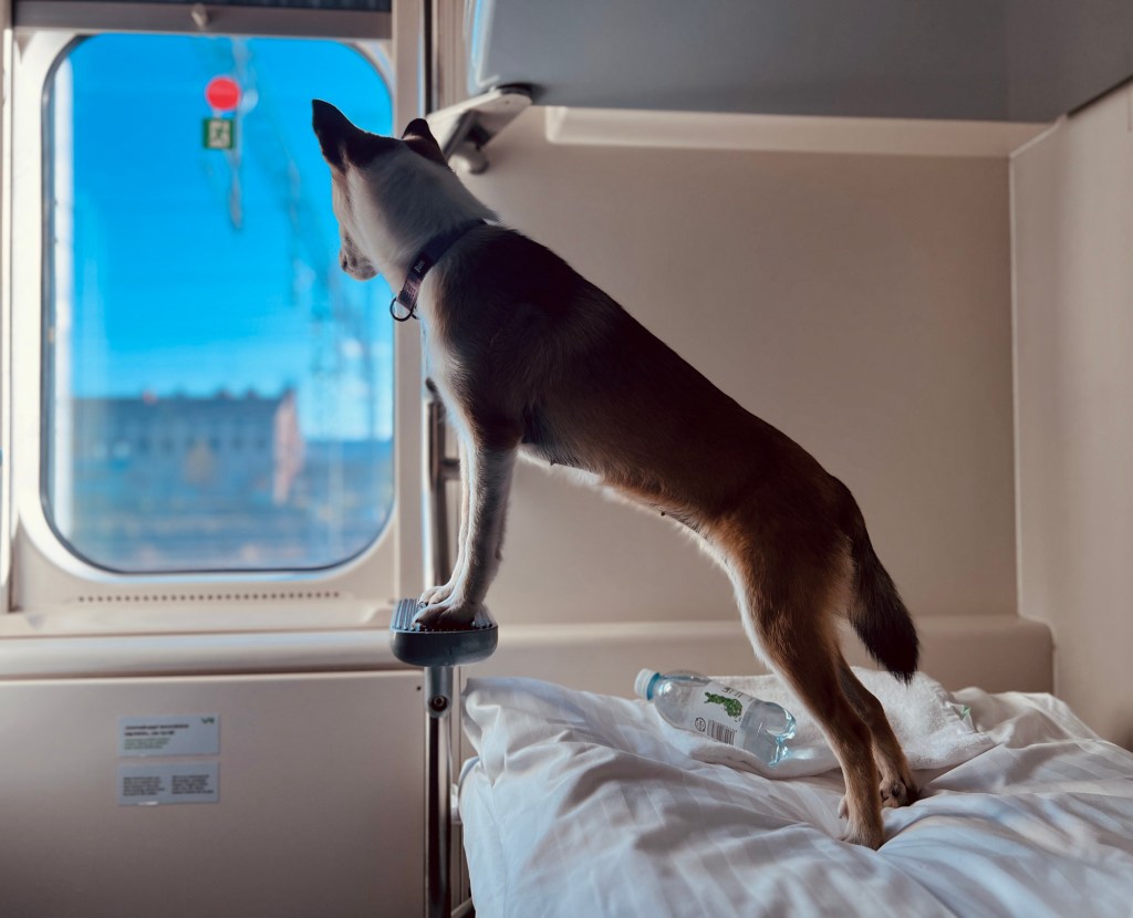 Ronja oli todella reipas kaveri reissussa; söi ja nukkui hyvin, sai olla vapaana lähes koko reissun, matkusti junalla ja bussilla tyylikkäästi ja minä olin tyytyväinen, että pentu sai kokea kaiken tuon. Lisätyötä se toi paljon, mutta uskon, että kaikki se vaiva oli sen arvoista.