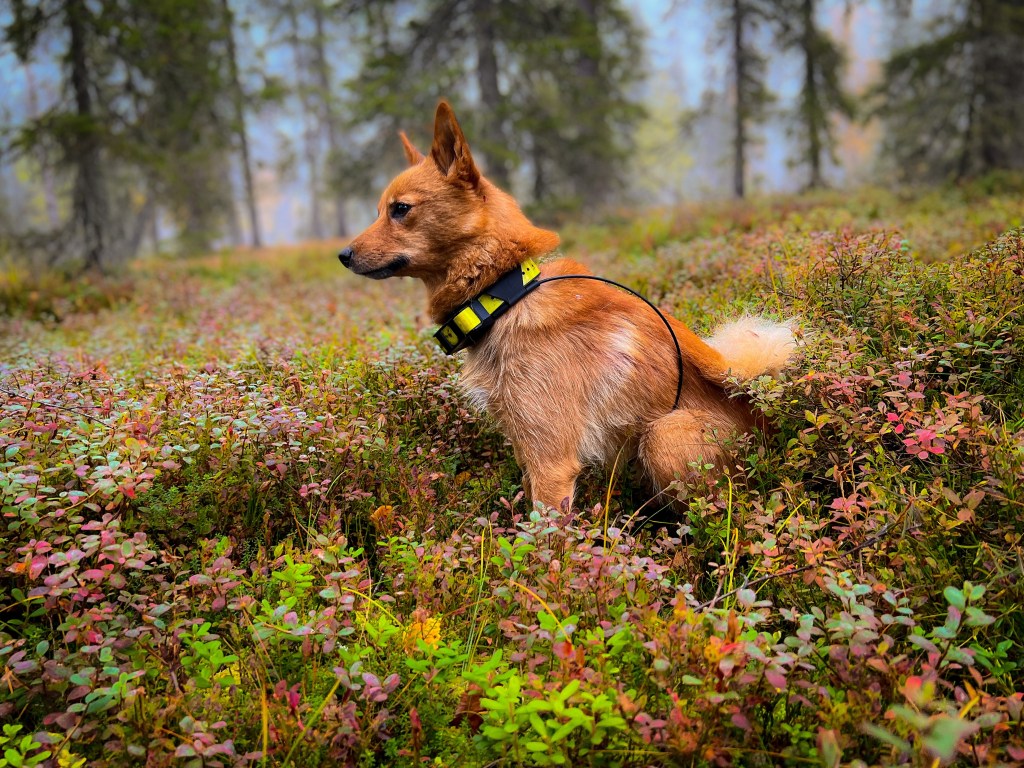 Tässä kohtaa olimme olleet metsässä neljä tuntia ja koira oli kulkenut 35 kilometria. Dollyn haku on sanoinkuvaamattoman upeaa; se kulkee ripeää laukkaa metsässä ja löytää linnut hakulenkeiltä (300-800 metriä on hakulenkkien ulottuvuus maaston mukaan) siten, että harvoin on haukkuun päättymätöntä hakulenkkiä, ainakaan täällä pohjoisessa. Dollyn seuraamiset ovat nyt olleet parhaimmillaan 350 metriä, aivan mahtavia siis.