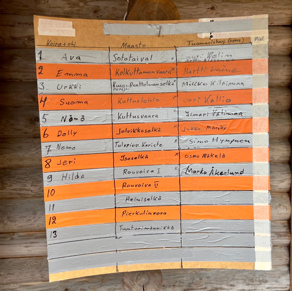 Palailimme autolle ja koe-erä päättyikin ajallisesti melko tarkkaan siihen. Ajoimme kämpille, maastotuomari kävi ylituomarin juttusilla kokeen tapahtumista. Minä kävin vielä kerran saunassa (onhan kuulkaa aivan ihana sauna!) ja odottelimme pitkähkön tovin tuloksia – olihan koiriakin parikymmentä.