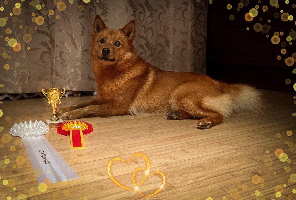 Dollyn isän omistaja Jouni sekä Dollyn isä Star tulivat juuri sopivasti palkintojen jakoon. Saimme perhepotretinkin otettua. Saanen viihdyttää teitä sillä: