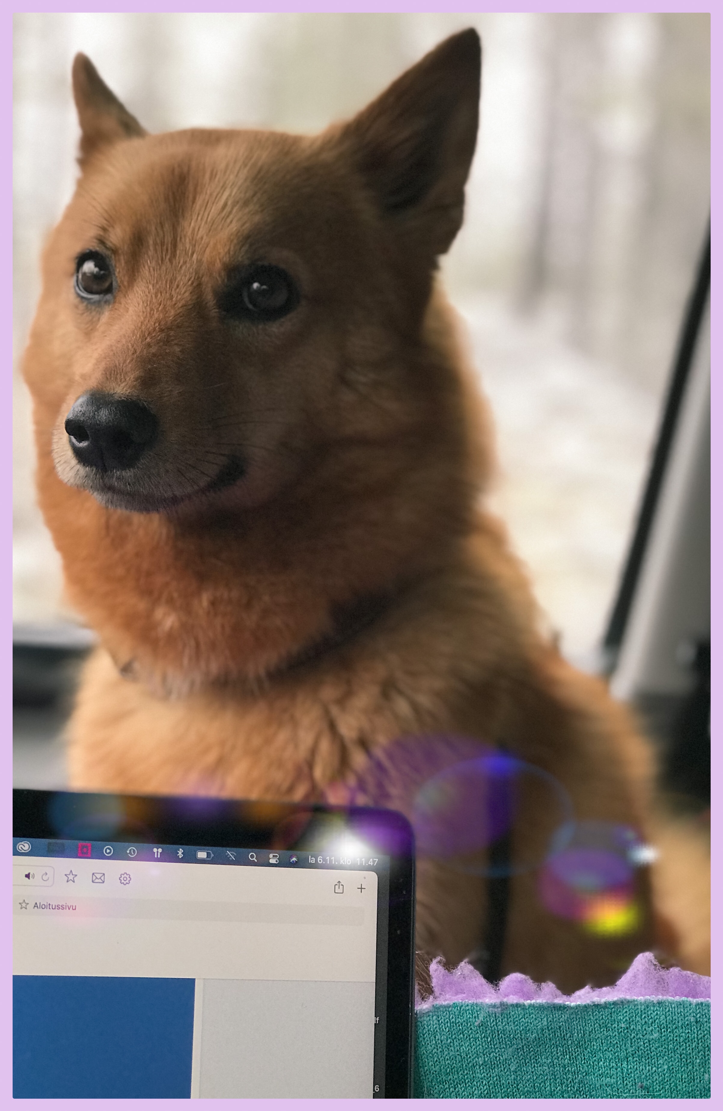 Ja viimeisenä tuore kuva mamma-koirasta Vesilahdelta, jossa hän oli turistina. Oli hän Porissakin turistina. Kovasti tykkää olla mukana joka paikassa.
