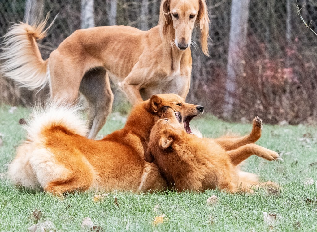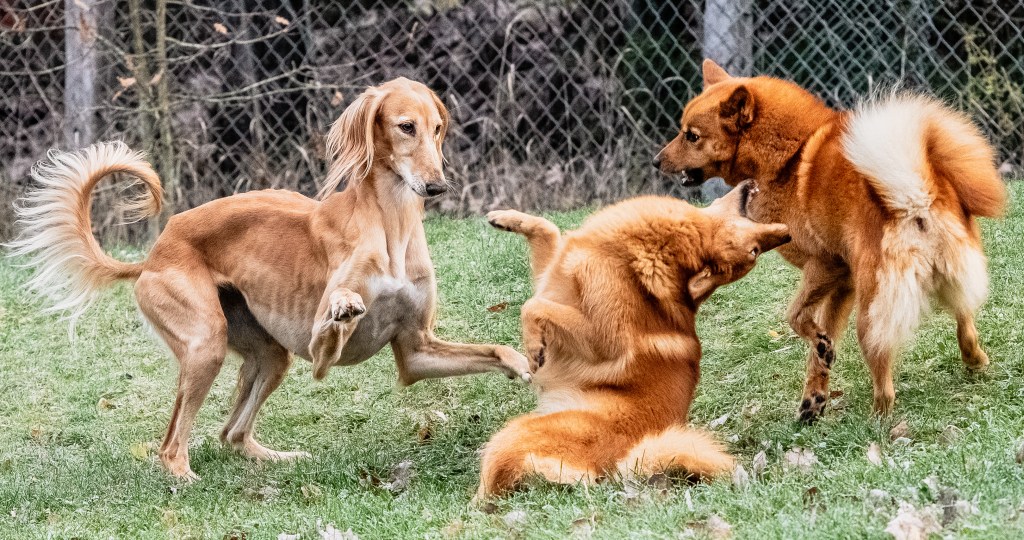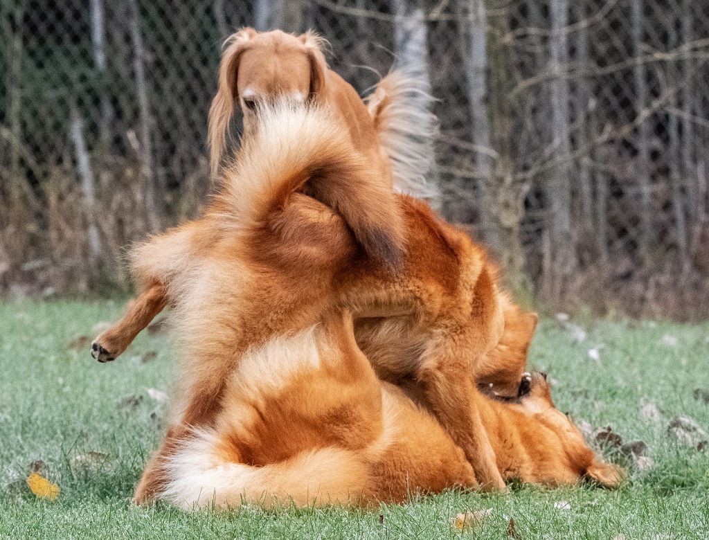 Pentu leikkii paljon. Emänsä kanssa, salukin kanssa. Laikat eivät halua olla missään tekemisissä sen kanssa, liiaksi energiaa. Onneksi on kavereita, tiedä mihin sen kanssa joutuisi, jos olisi ainoa koira.