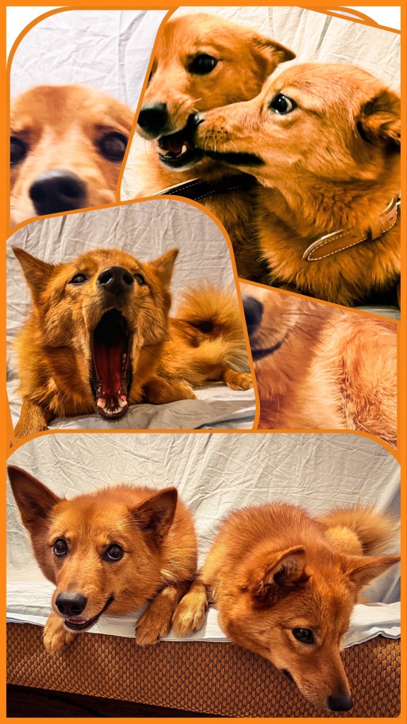 Reippaita matkalaisia nämä pystykorvat ovat; todettiin, että mikään ei ainakaan pelota. Eivät rähjää vieraille koirille, haluaisivat mennä kaikkia moikkaamaan, ulkona viipottavat menemään kuin maaniset ADHD- potilaat ja oikeasti muutoin käyttäytyivät varsin asiallisesti. Ei lainkaan turhaa haukkumista, niiden kanssa oli kaiken kaikkiaan helppo matkustaa.