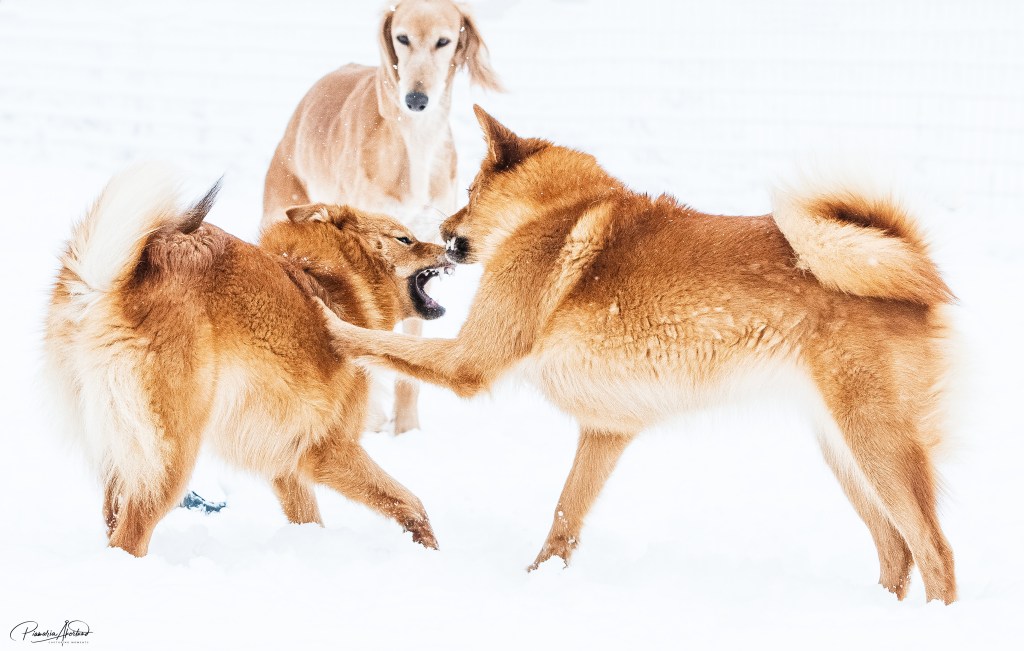 Laikat aloittivat juoksut. Se tarkoittaa, että jokainen muukin koira tässä huushollissa on sekaisin. Epäilen, että vaikuttaa Sumun juoksujen aloittamiseen – Dollysta en tiedä. Syksyllä Sumu odotteli salukin juoksuja, ennen kuin aloitti omansa. Meni kuukaudella yli oletetun. On jännä seurata, miten ne nuuskivat toistensa takapuolia ja odottavat ja odottavat ja aloittavat sitten samaan aikaan.