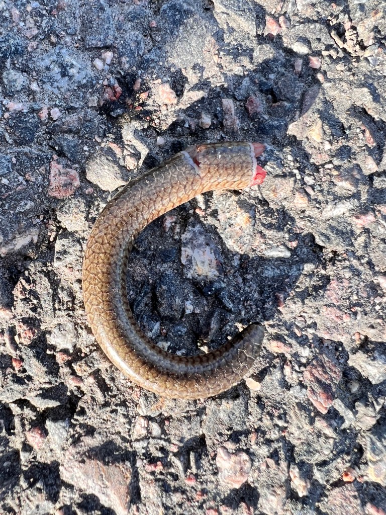 Lopulta Sumu sylkäisi palasen suustaan ja se jäi kiemurtelemaan maahan. Häntäpää, mutta minkä? En pystynyt katsomaan lähempää, koska molemmat pystykorvat tempoivat aivan hurjana kiemurtelevaa häntää kohti. Sitä siinä tuijotan ja koetan saada itseni rauhoittumaan. Soitin jo Markon paikalle, jos se olikin käärme, sillä emme kyllä voisi siinä tapauksessa kotiin kävellä.