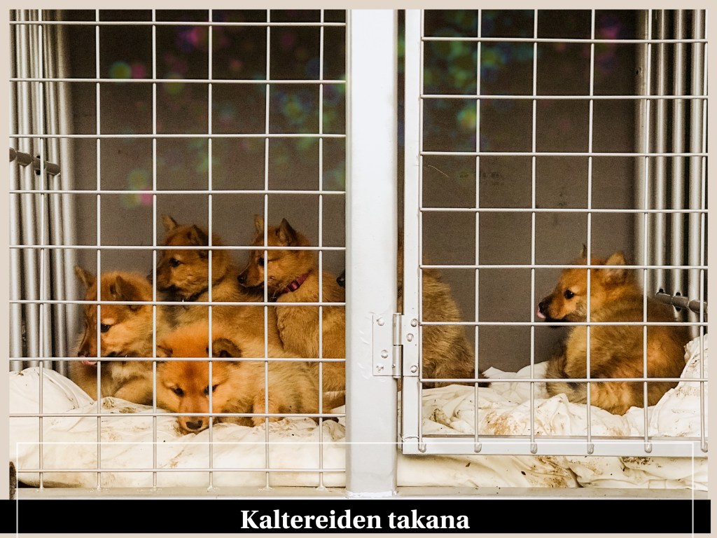 Olen koettanut ottaa kuvia, mutta niiden läpikäyminen on ollut työlästä. Ehkäpä saan ne käytyä läpi pentujen muutettua omiin koteihinsa. Toki työssäkin on käytävä ja muut koirat sekä huusholli hoidettava, jotta onhan tässä monenlaista. Meillä on onneksi mahtava tiimi huolehtimassa pennuista silloinkin, jos joudumme olemaan työssä samaan aikaan. Mummi käy ruokatunnilla katsomassa pentuja ja lisää ruokaa ja vettä. Ada tulee koulusta suoraan niitä hoitamaan ja isommat teinit katsovat pitkin hampain ehkä jonkin aikaa pentuja. Tarhassaoloaika ei ole kovin pitkä, mutta siellä ne ovat saaneet olla arkisin.