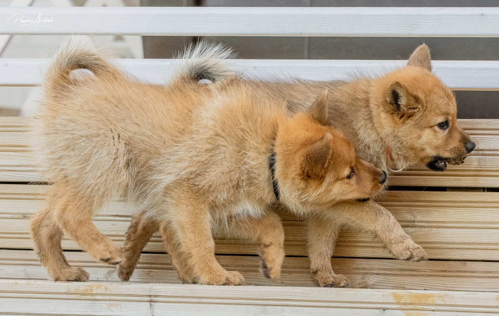 Pennut ovat oppineet pomppimaan rappusia ylös ja valitettavasti myös alas. Alaspäin on vaarallista pomppia, joten koetamme niitä nostella, jotta nivelille ei tulisi kohtuutonta rasitusta. Ne osaavat kaivaa maata ja levittää multaa. Pennut osaavat ilmaista tarpeensa piippaamalla, pissivät ulos, kun ne viedään ulos unien jälkeen.