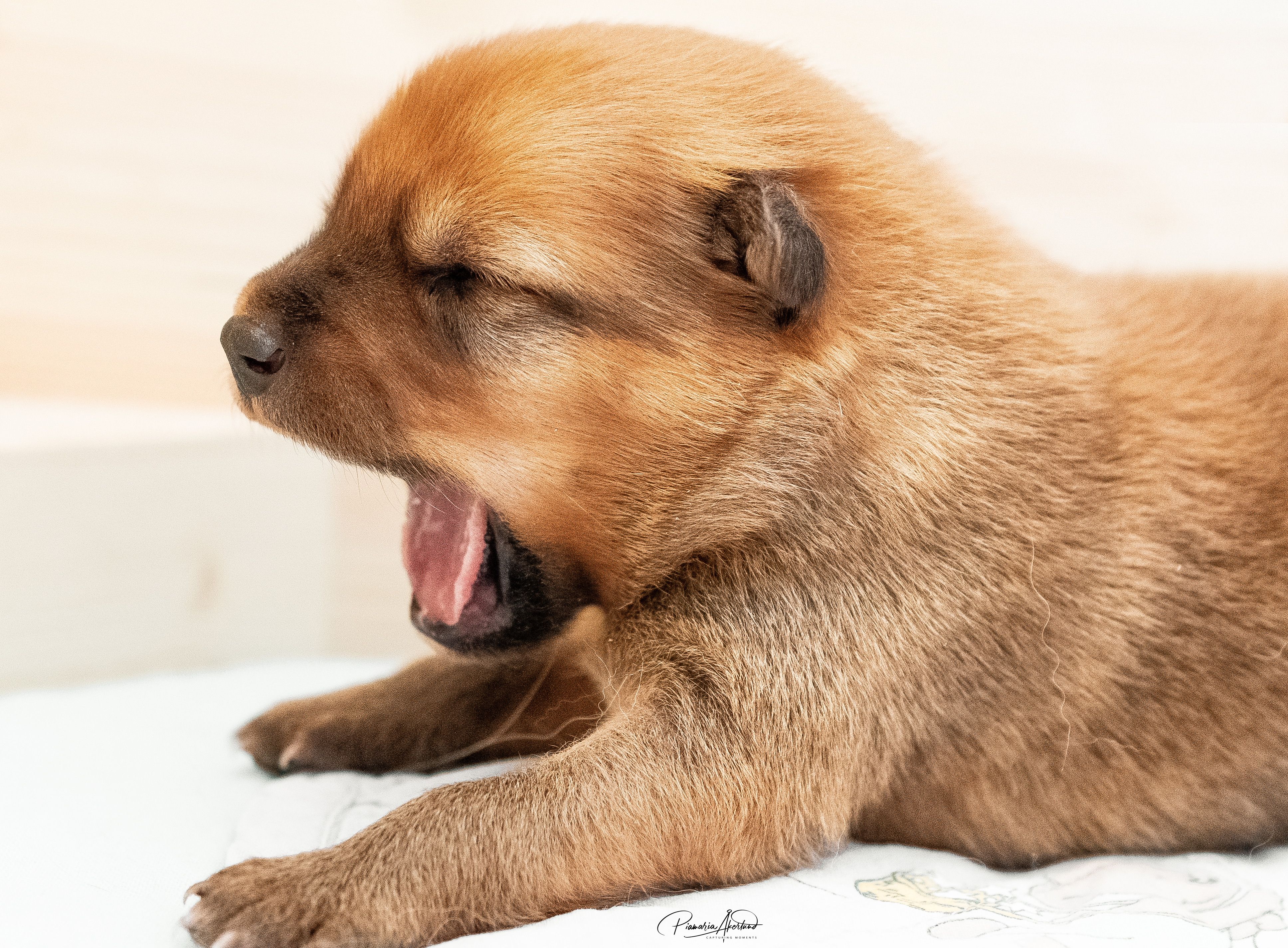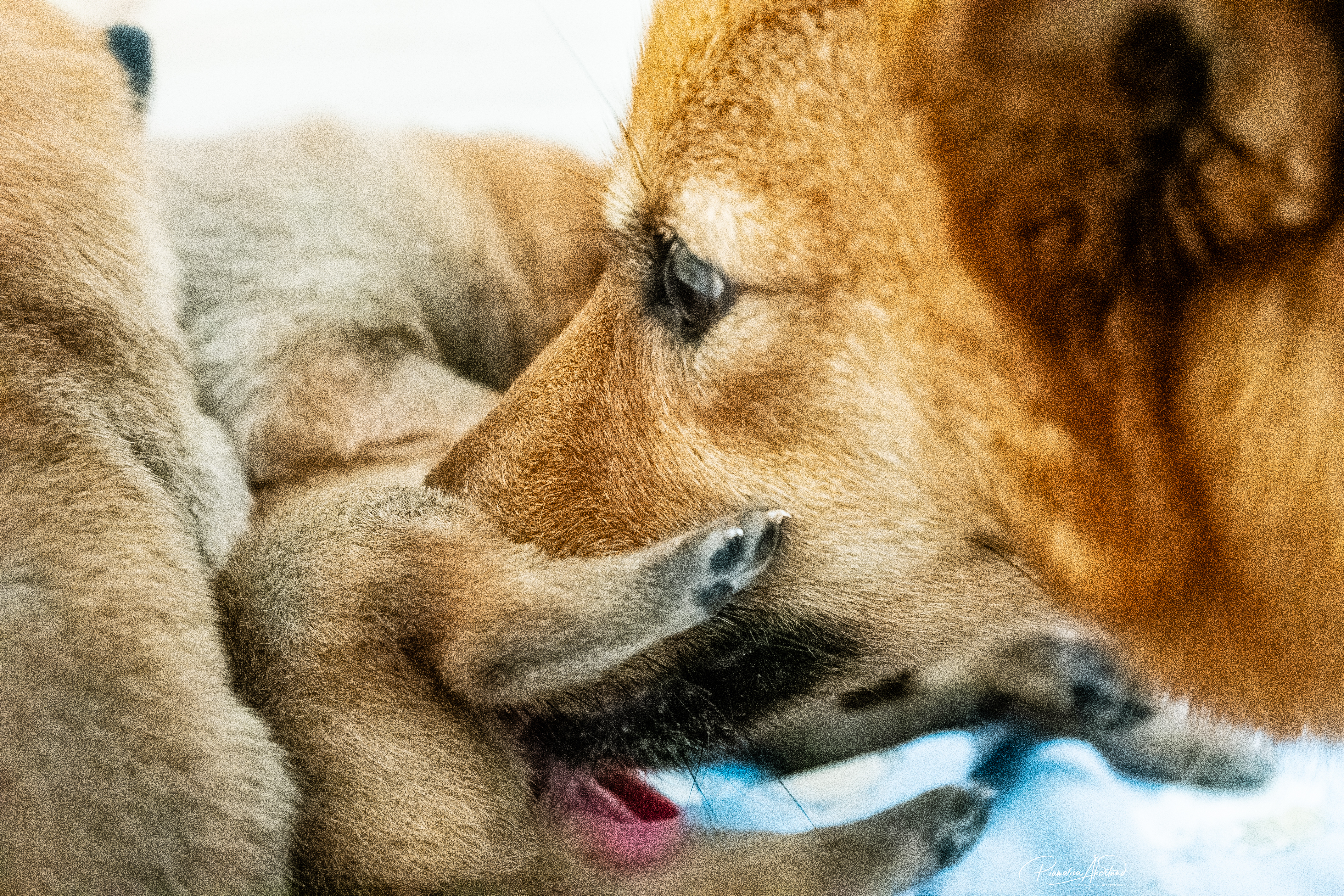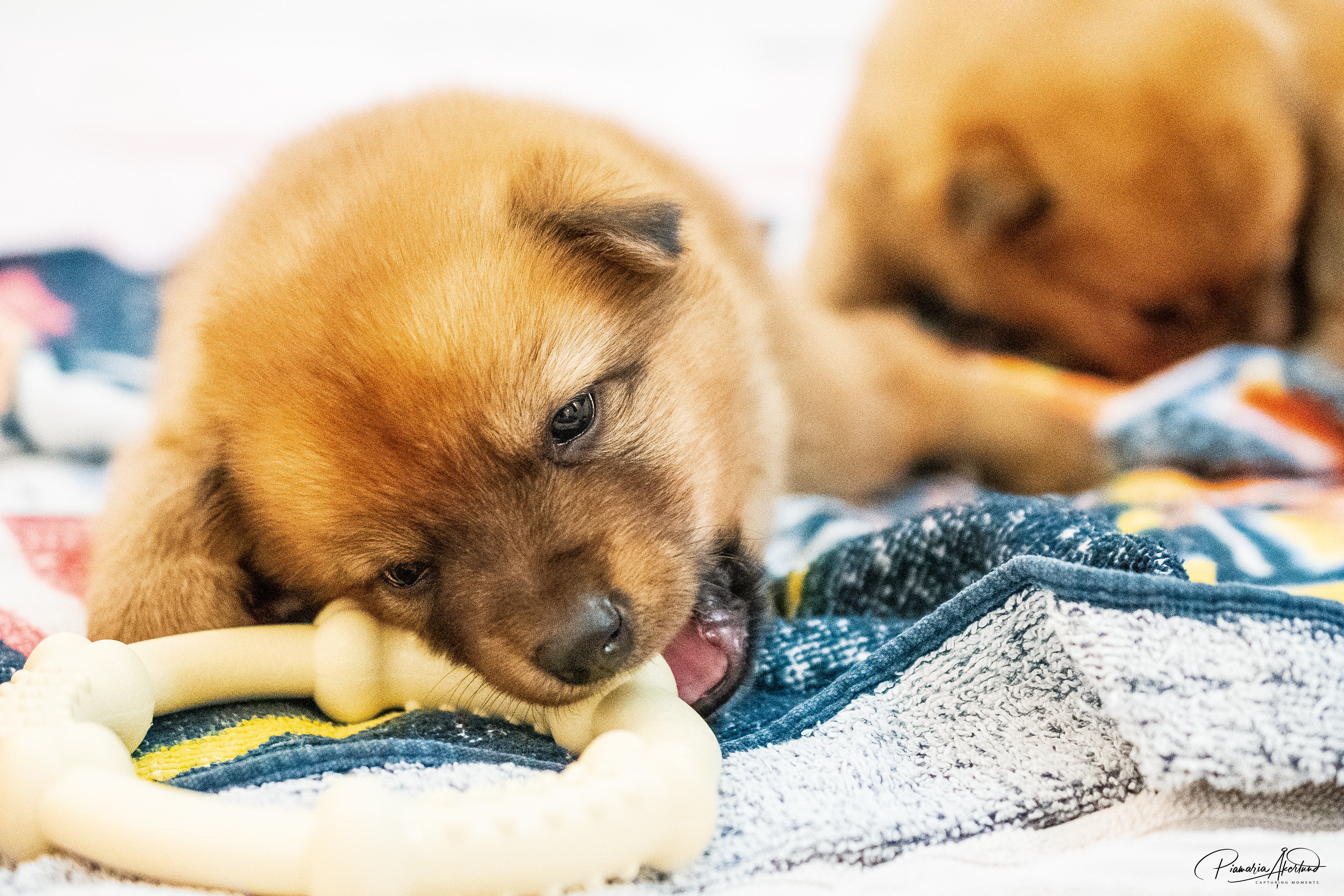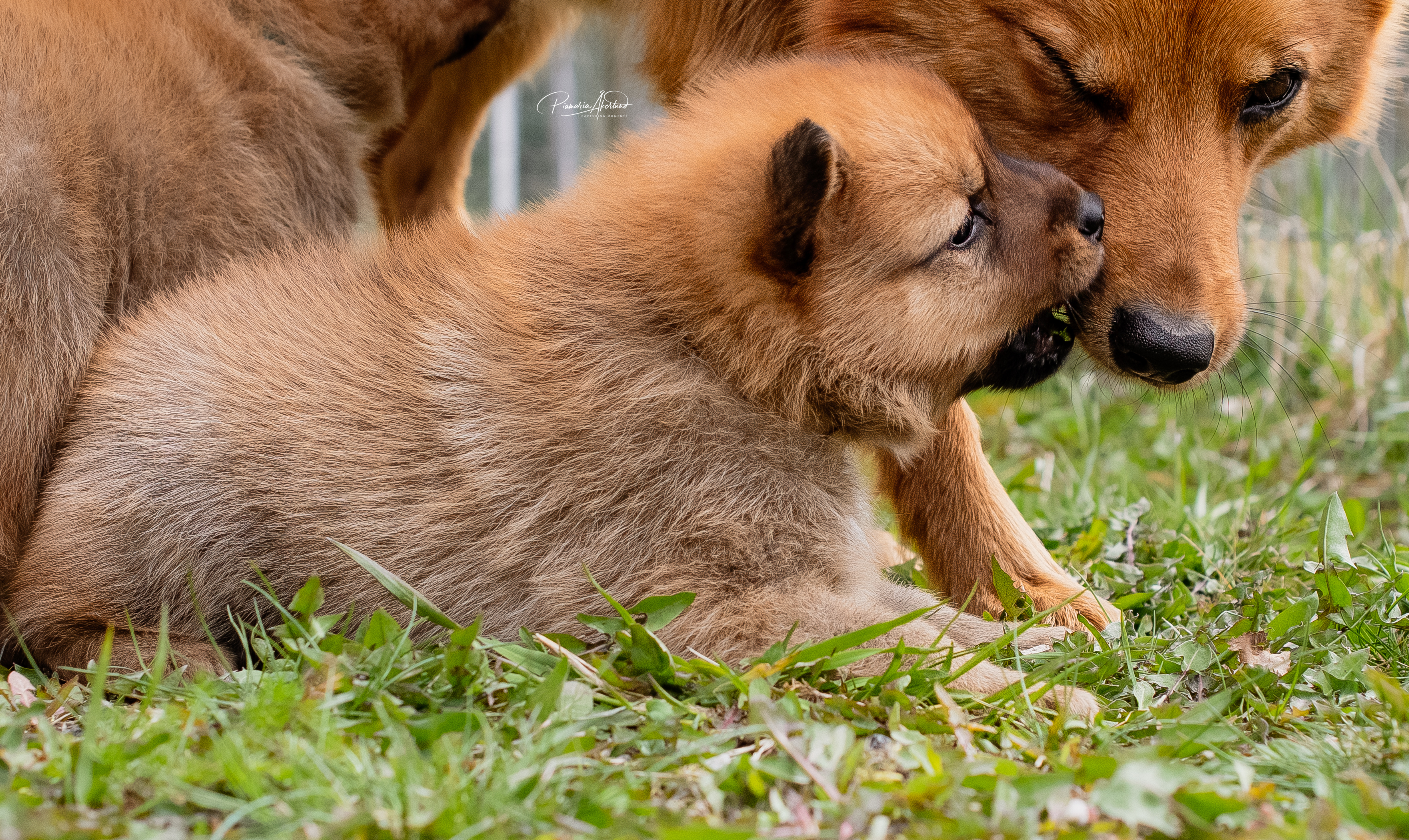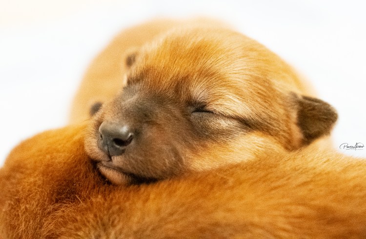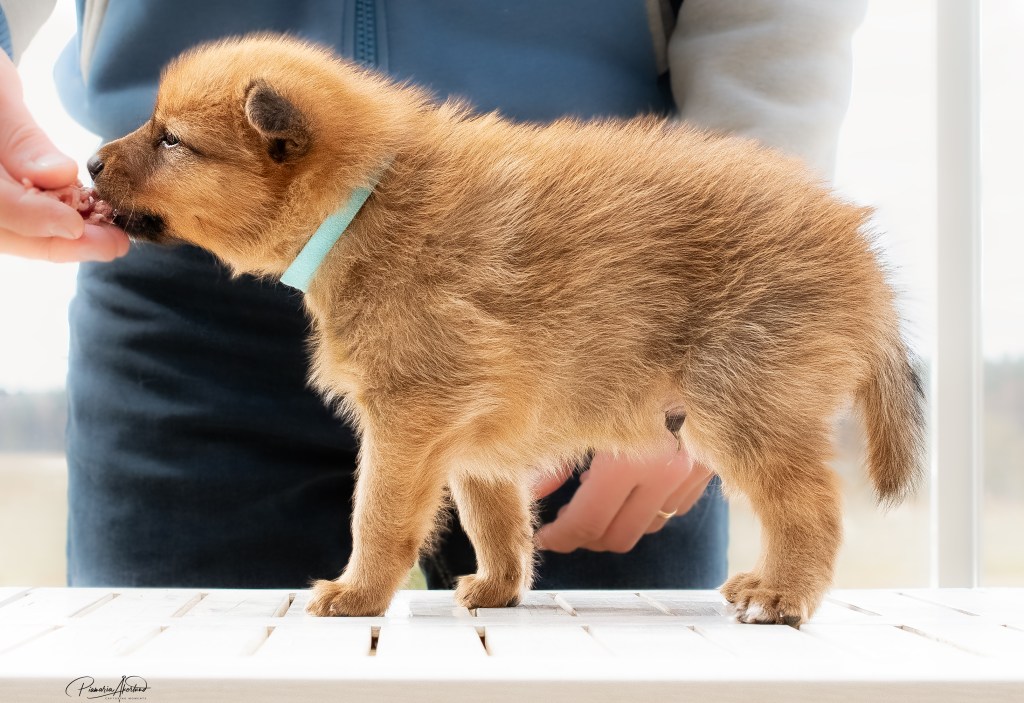 Kyllä saavat nyt pennut kärsiä; mamma-koira on päättänyt vähentää maitobaarin tarjontaa. En kyllä laisinkaan ihmettele miksi, kun tuollainen natiainen puraisee varpaasta. Lisäksi ne painavat kaikki yli kaksi kiloa, joten yhteispaino on enemmän kuin mamma-koiralla. Kannatan ajatusta – alkaa olla mahdollisen rajamailla. Murina kuulostaa hurjalle, mutta kukaan ei loukkaannu vieroituksessa (muuten kuin hieman henkisesti ehkä) – Sumu haluaa selvästi olla pentujen kanssa mutta imetys loppukoon. Tämä on erittäin hyvä asia, ovat sitten vieroitettuja ennen luovutusikää. Eikä tarvitse ihmisen siihen puuttua, vaikka myönnän, että alkuun hieman hämmennyin murinasta. Tämähän on ensimmäinen pentue. Sumu hakeutuu koko ajan pentujen seuraan ja leikkii sekä juoksee pihalla niiden kanssa. Ratkoo niiden välisiä riitoja. Edelleen puolustaa niitä muulta laumalta. Olen tavattoman ylpeä siitä, miten se jaksaa niiden kanssa touhuta. Myöhään illalla ja yöllä se on vielä imettänyt ilman murinoita.