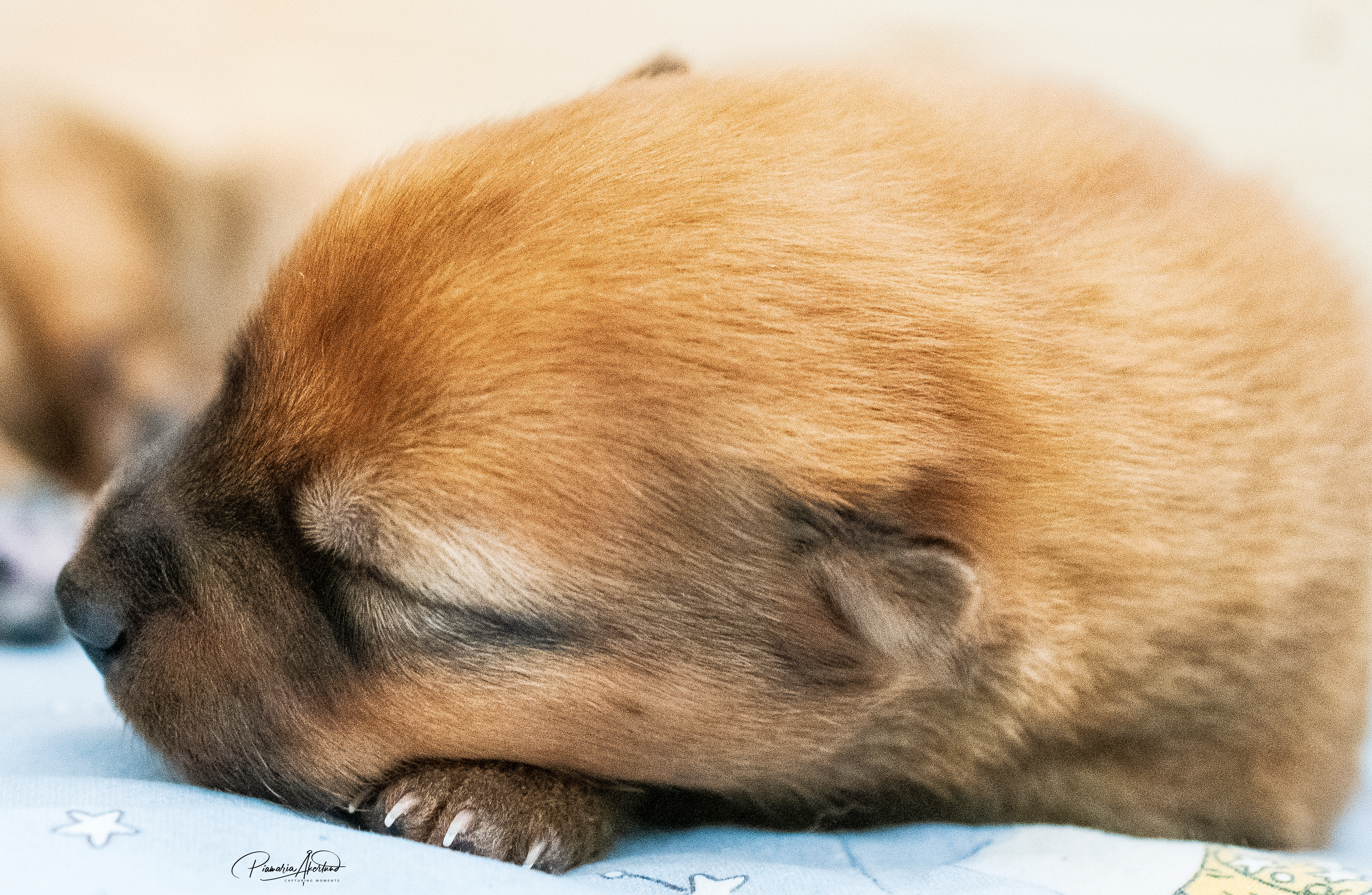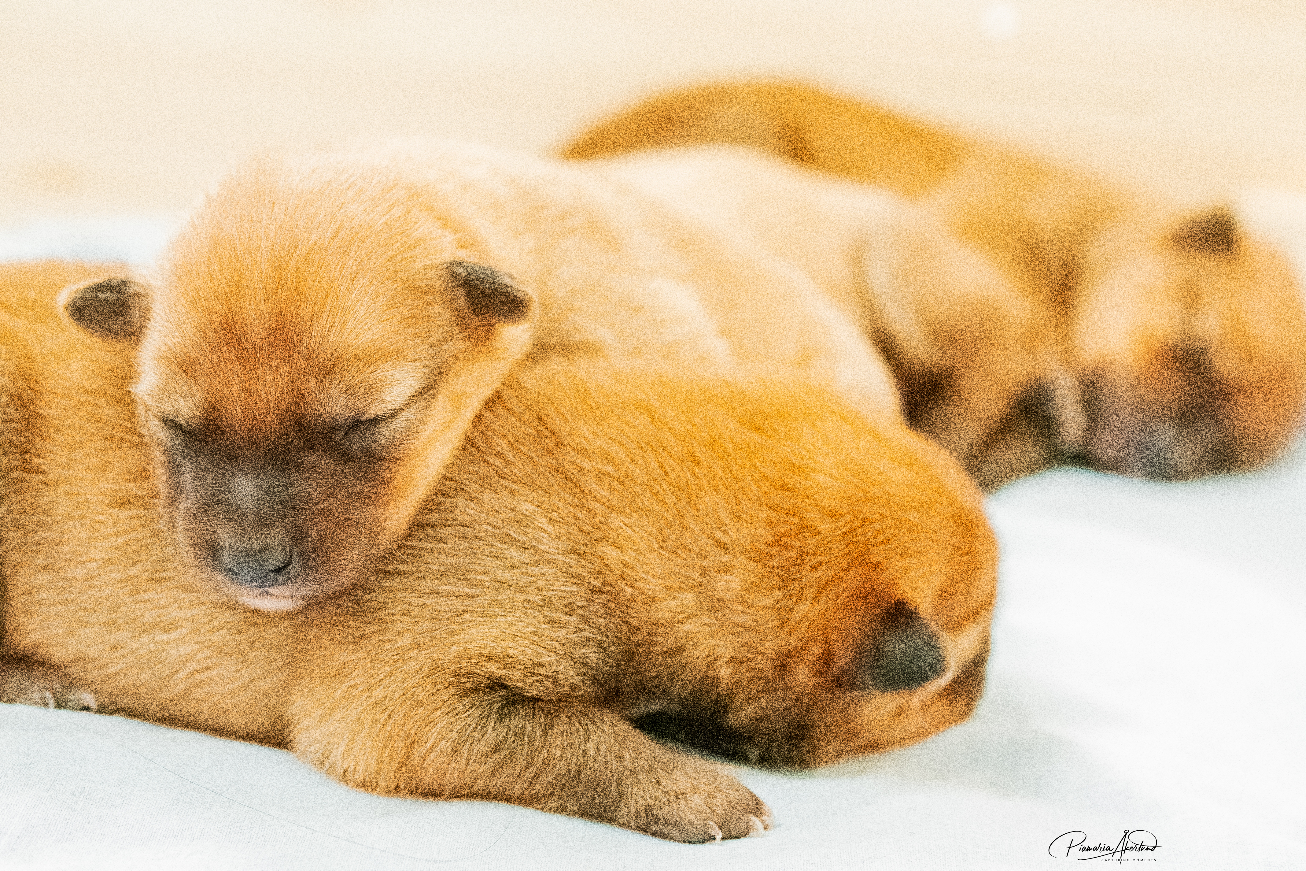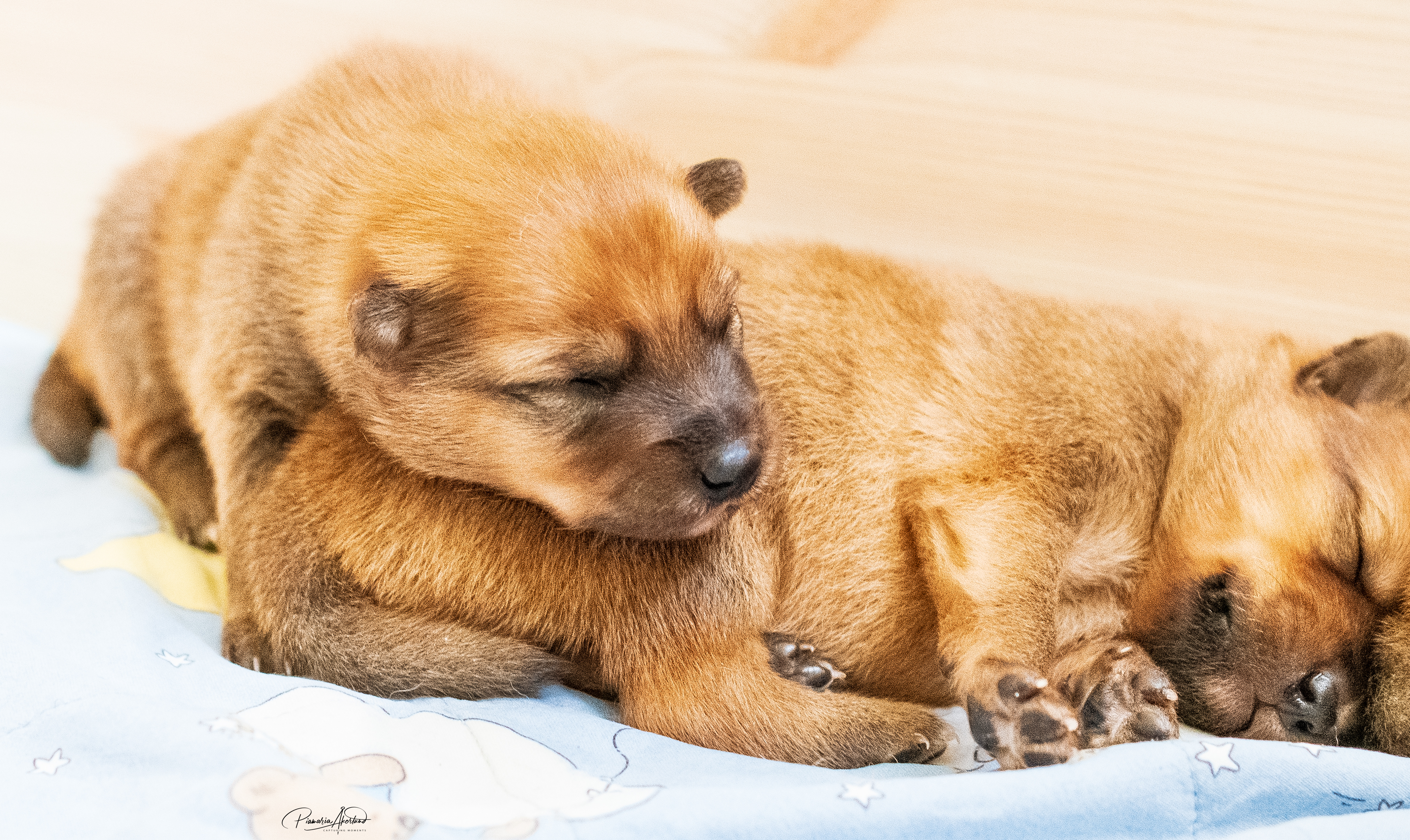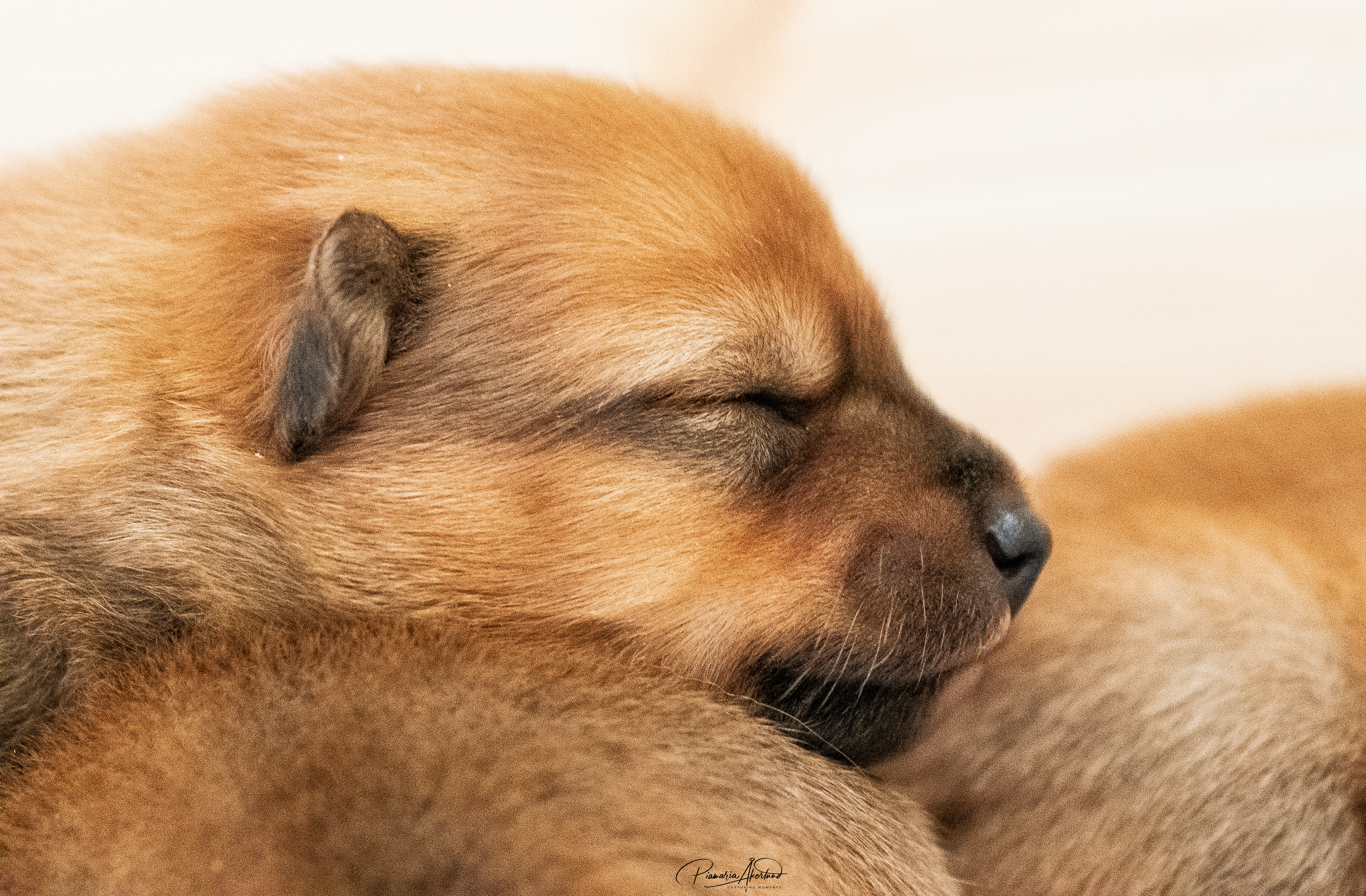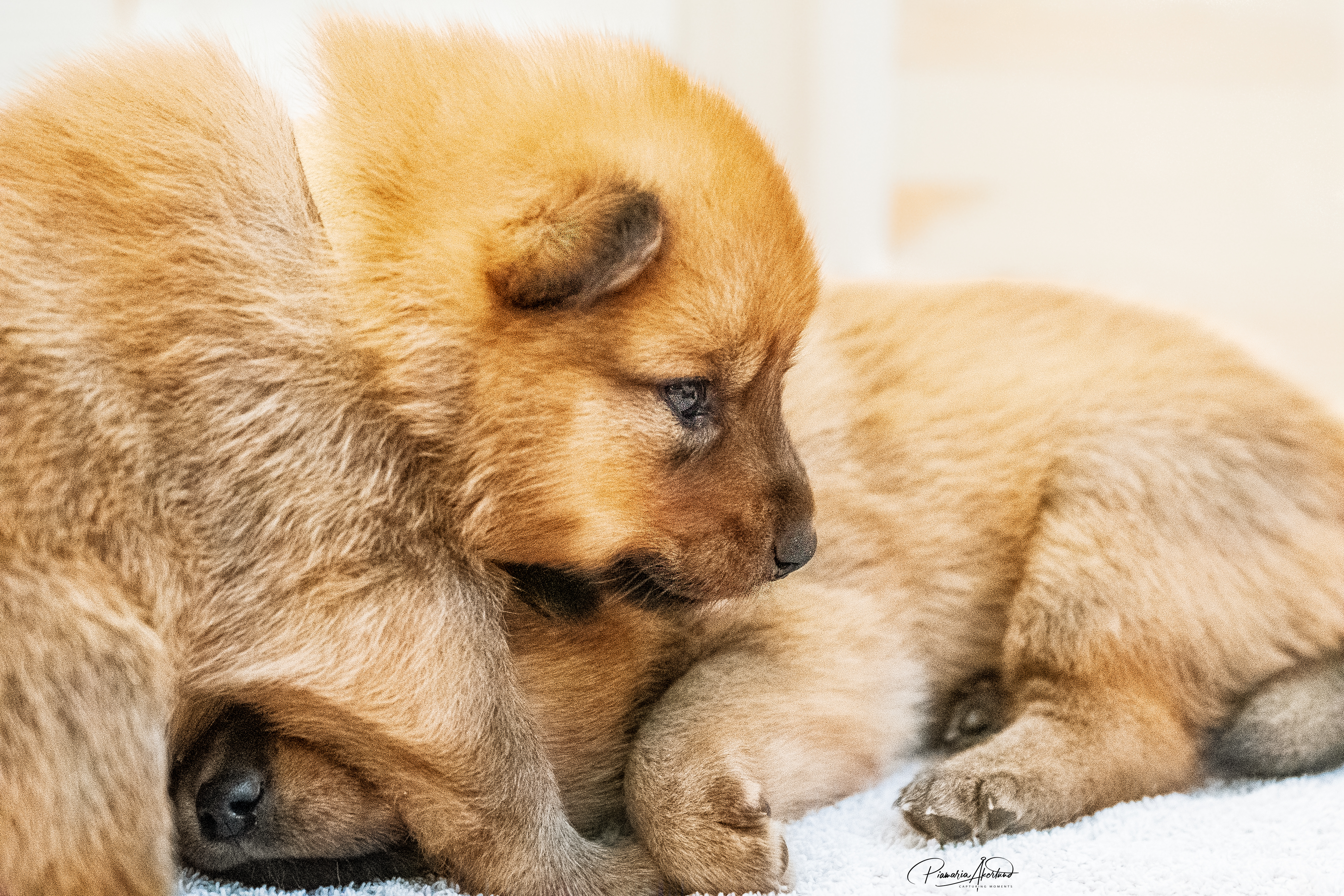 Kyllä saavat nyt pennut kärsiä; mamma-koira on päättänyt vähentää maitobaarin tarjontaa. En kyllä laisinkaan ihmettele miksi, kun tuollainen natiainen puraisee varpaasta. Lisäksi ne painavat kaikki yli kaksi kiloa, joten yhteispaino on enemmän kuin mamma-koiralla. Kannatan ajatusta – alkaa olla mahdollisen rajamailla. Murina kuulostaa hurjalle, mutta kukaan ei loukkaannu vieroituksessa (muuten kuin hieman henkisesti ehkä) – Sumu haluaa selvästi olla pentujen kanssa mutta imetys loppukoon. Tämä on erittäin hyvä asia, ovat sitten vieroitettuja ennen luovutusikää. Eikä tarvitse ihmisen siihen puuttua, vaikka myönnän, että alkuun hieman hämmennyin murinasta. Tämähän on ensimmäinen pentue. Sumu hakeutuu koko ajan pentujen seuraan ja leikkii sekä juoksee pihalla niiden kanssa. Ratkoo niiden välisiä riitoja. Edelleen puolustaa niitä muulta laumalta. Olen tavattoman ylpeä siitä, miten se jaksaa niiden kanssa touhuta. Myöhään illalla ja yöllä se on vielä imettänyt ilman murinoita.