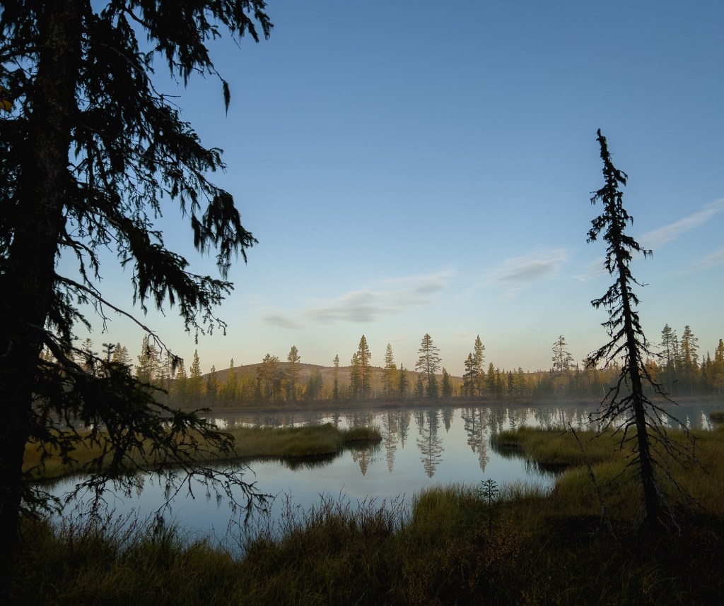 Uma tippui jokeen Ruotsin puolella. Leiriydyimme pienen lammen rannalla, siinä 100 metrin päässä oli joki. Uma oli ollut edellisellä leiripaikalla myös joen rannalla hyvin tuloksin, oli kovin kiinnostunut vedestä, mutta myös varovainen. Umalla oli onneksi paikannin koko ajan kaulassa.
