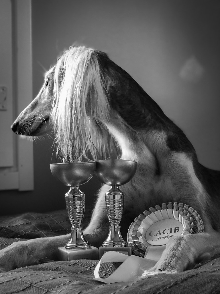 Isla oli myös kaunis, voi hyvä luoja miten kaunis se olikaan. En osaa sanoa, oliko siinä yhtään virhettä. Omaan silmään ei ollut. Kävimme näyttelyissä Suomessa valioksi saakka ja muutamia kertoja valioitumisen jälkeen. Lapset olivat sen verran nuoria, että en ulkomaille sen kanssa sitten lähtenyt, vaikka sen olisi kansainväliseksi muotovalioksi melko helposti saanutkin.
