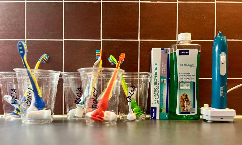 Paras hammasharja koirille on lasten hammasharja ja tahnan täytyy luonnollisesti olla koirien omaa – ne nielevät tahnan, joten ksylitoli ei käy, koska se kertyy elimistöön. Hampaiden harjauksen lisäksi voi käyttää muitakin tuotteita, mutta pelkällä manuaalisella harjauksella pääsee jo pitkälle.