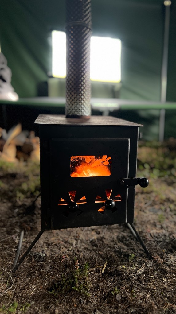 Meillä oli tänä vuonna kaasulämmitin teltassa ja melkoista luksusta se olikin, sillä aamut olivat paljon kuivempia herätä kuin aiemmin. Toki se asetti hieman vaatimuksia sen suhteen, että kaasua piti aina olla ja sitä varten piti toisinaan lähteä kauppaan ja ihmisten ilmoille.