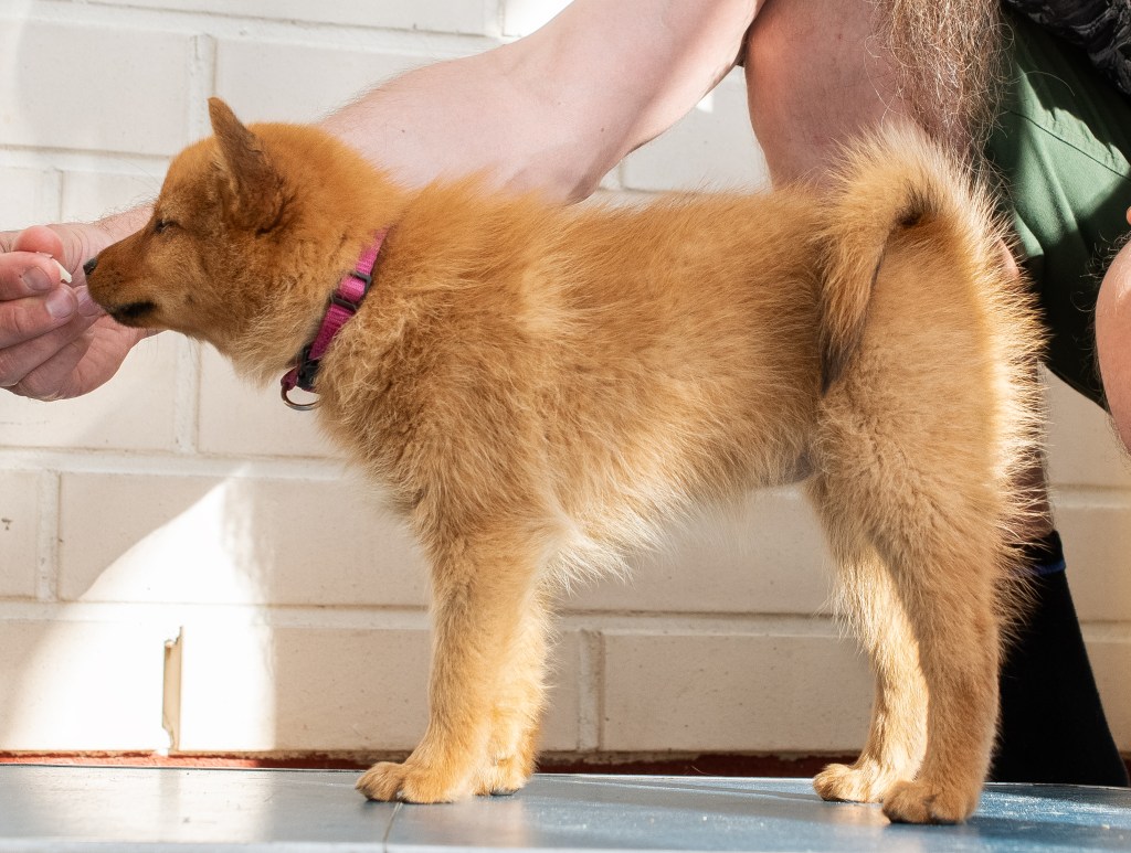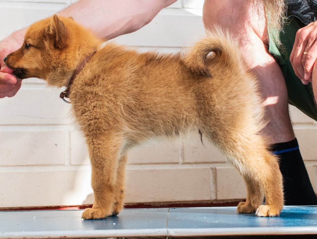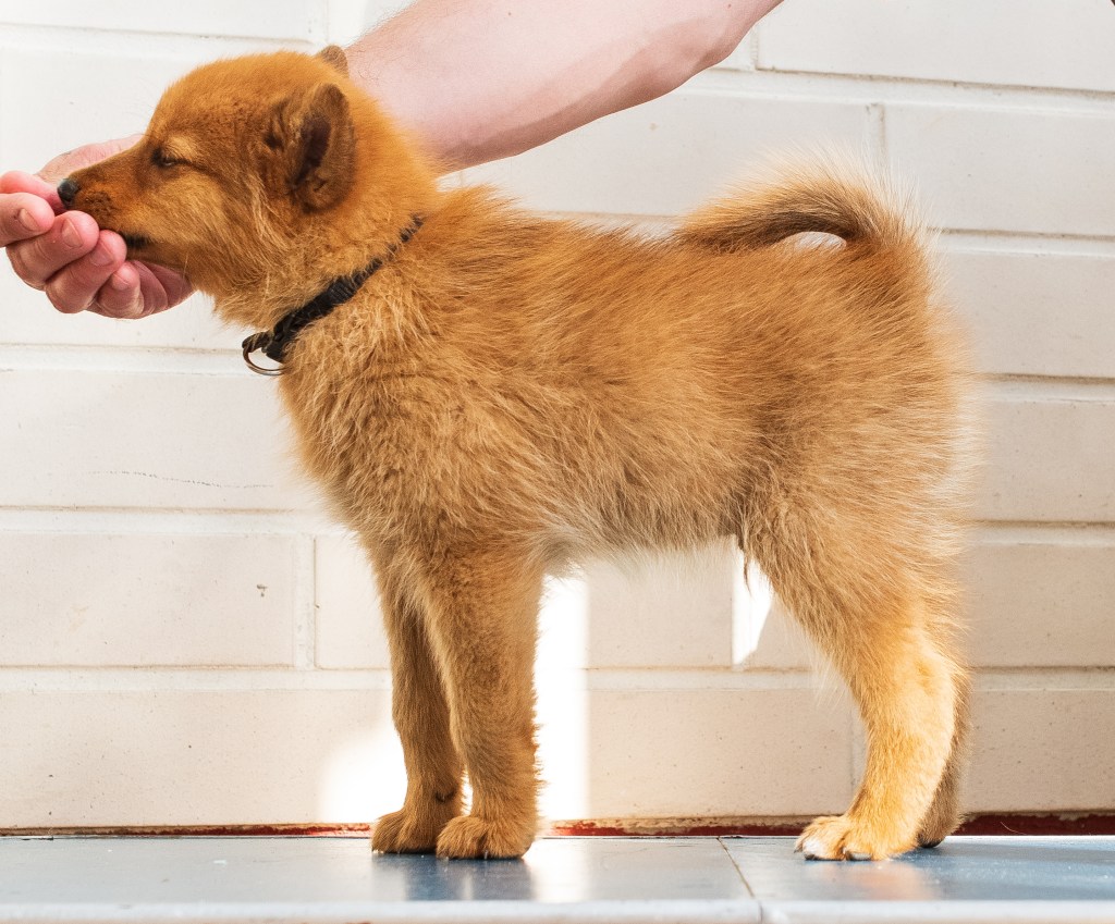 Otettiin profiilikuvat kaikista pennuista. Ja ei, eivät ne seiso niissä kunnolla. Halusivat hypätä alas pöydältä ja muuta yhtä turvallista. Jauhelihaa on päätynyt suuhun ja pöydälle. Mutta ne ovat nyt ensimmäiset profiilikuvat palleroista. Jos seuraavalla kerralla tai sitä seuraavalla saataisiin vähän paremmat. Osa oli vähän uneliaita, hännätkin jäivät niillä alas, mutta kyllä ne kaikilla ovat pystyssä. Näitä ei ehkä kannata katsoa arvostelumielessä ollenkaan.