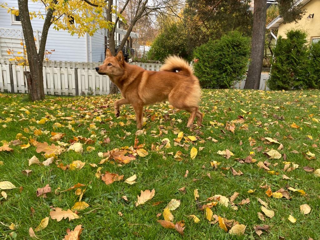 Pökö on kaupunkilaisena ehtinyt jo nähdä monenmoista; tottunut erilaisiin tapahtumiin ja kulkuneuvoihin ja hurmannut väkeä kaduilla kulkiessaan. En lainkaan ihmettele, sillä Pökö on hurjan komea nuori pystykorvanalku. Pökö on myös harjoitellut ahkerasti linnunpyyntiä.