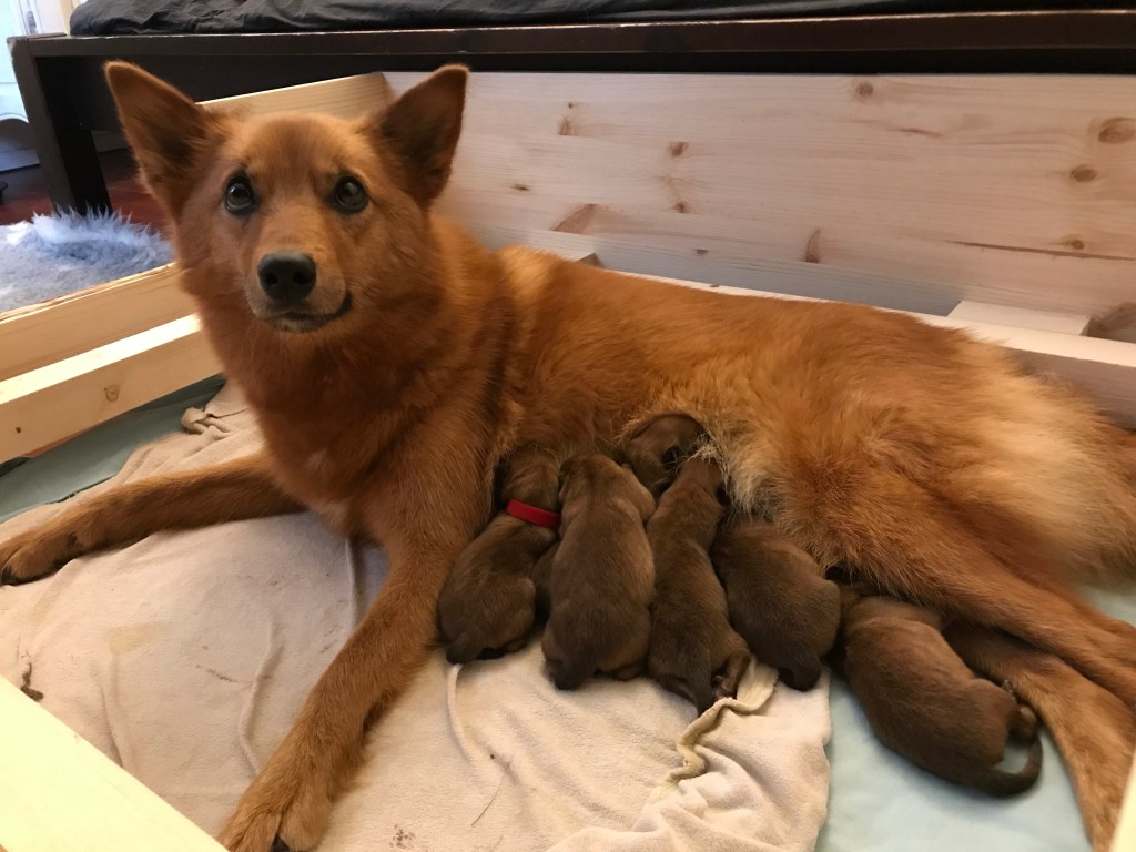 Kaksi vuotta sitten – ylpeä koiraemo vastasyntyneen pesueensa kanssa. ❤️